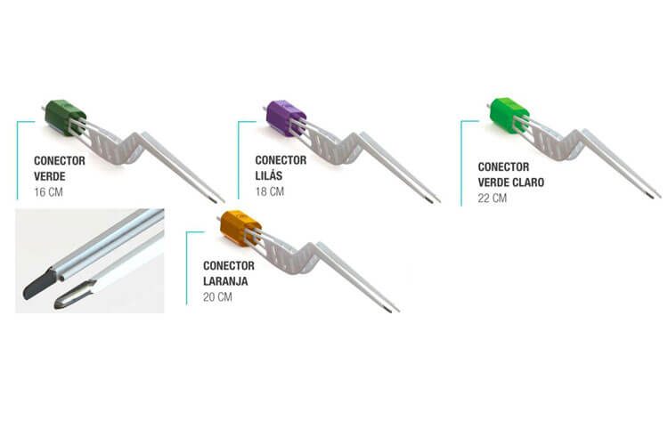 Tamanhos: 16cm, 18cm,20cm e 22cm com ponta ativa de 1.5mm – com ou sem irrigação.