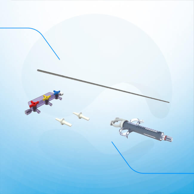 Kit projetado para facilitar o acesso simultâneo à localização e ao bloqueio de plexos e nervos periféricos por meio de estimulação elétrica percutânea.